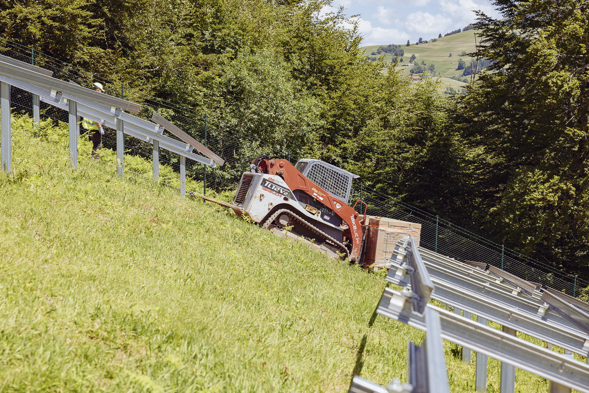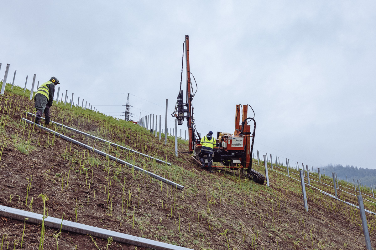 Auf über 500 Metern Höhe, in einem Gelände mit Neigungen von bis zu 40 Grad in alle Richtungen, entstand Deutschlands aktuell steilster Solarpark – ein Projekt, das zeigt, was mit präziser Planung, Erfahrung und Pragmatismus möglich ist.