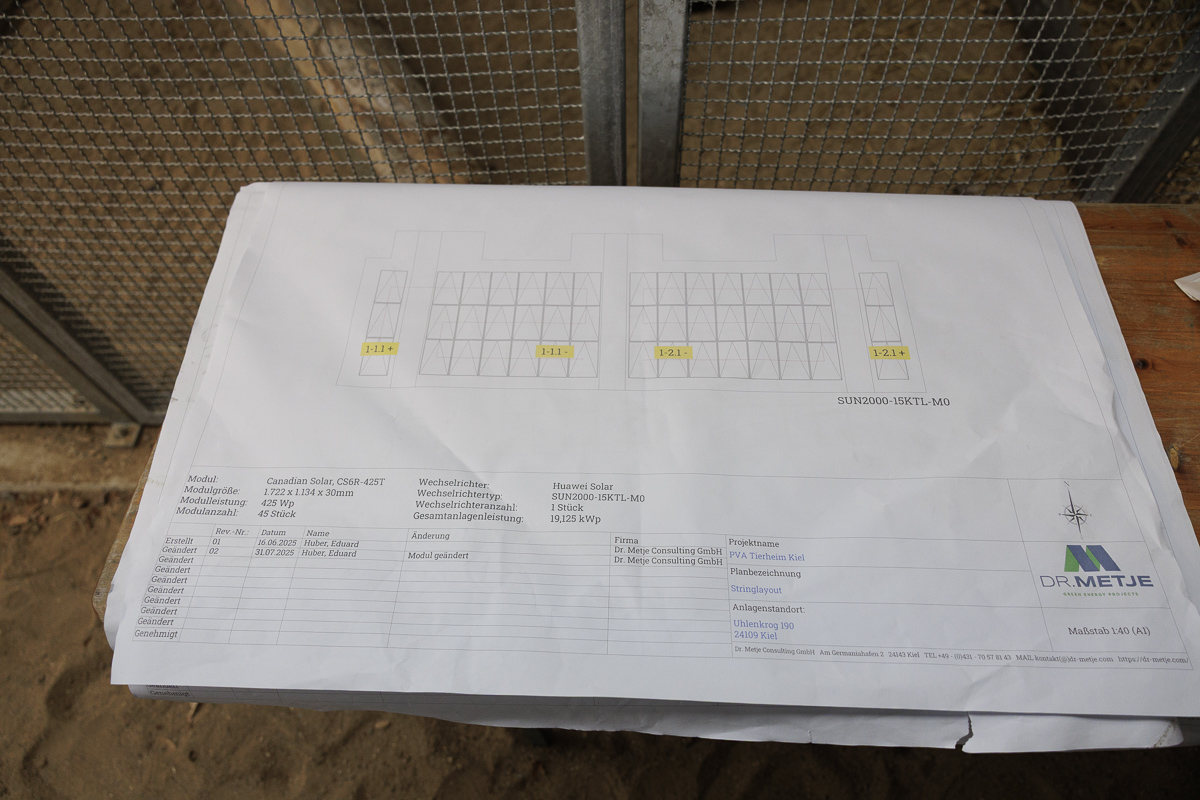 Seit dem 16. Oktober 2025 produziert die PV-Anlage auf dem Dach der neuen Vogelvoliere jährlich etwa 18.000 Kilowattstunden sauberen Strom und reduziert damit die Energiekosten des Tierheims deutlich. Bei einem jährlichen Stromverbrauch von rund 70.000 Kilowattstunden sorgt die Anlage für eine langfristige finanzielle Entlastung – ein Beitrag, der spürbar wirkt.
